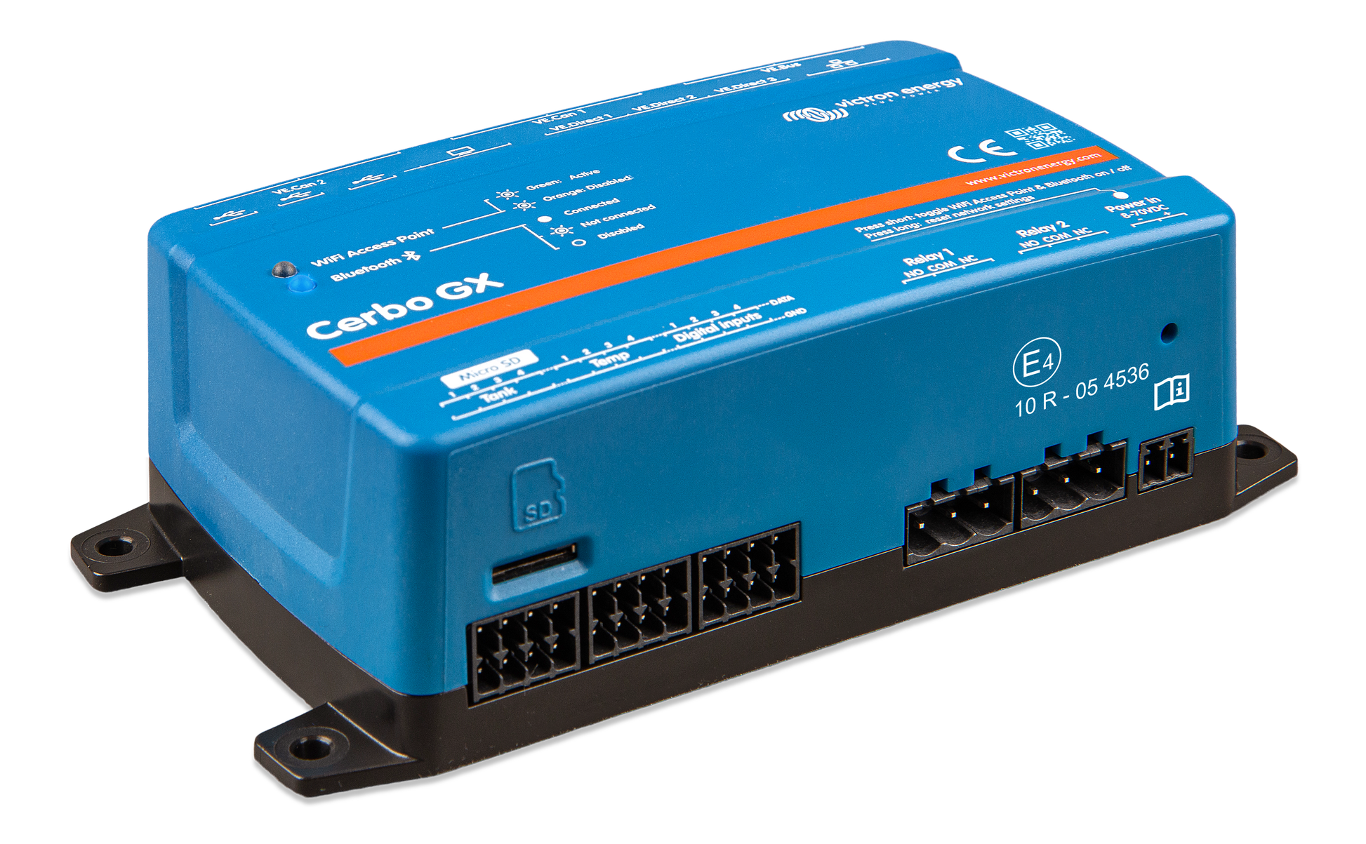Simply connect through our Victron Remote Management (VRM) portal, or access directly, using the separate GX Touch, a MFD or our VictronConnect App thanks to its added Bluetooth capability. This latest addition to the GX-range combines all the best of connectivity, redefining smart power solutions in every way.